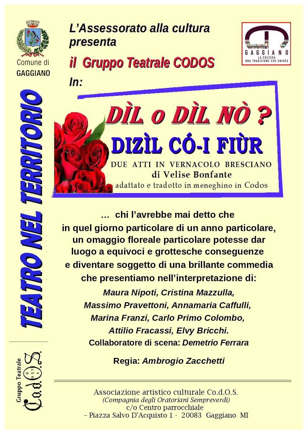 L'Assessorato alla Cultura invita tutti allo spettacolo del Gruppo Teatrale CODOS: