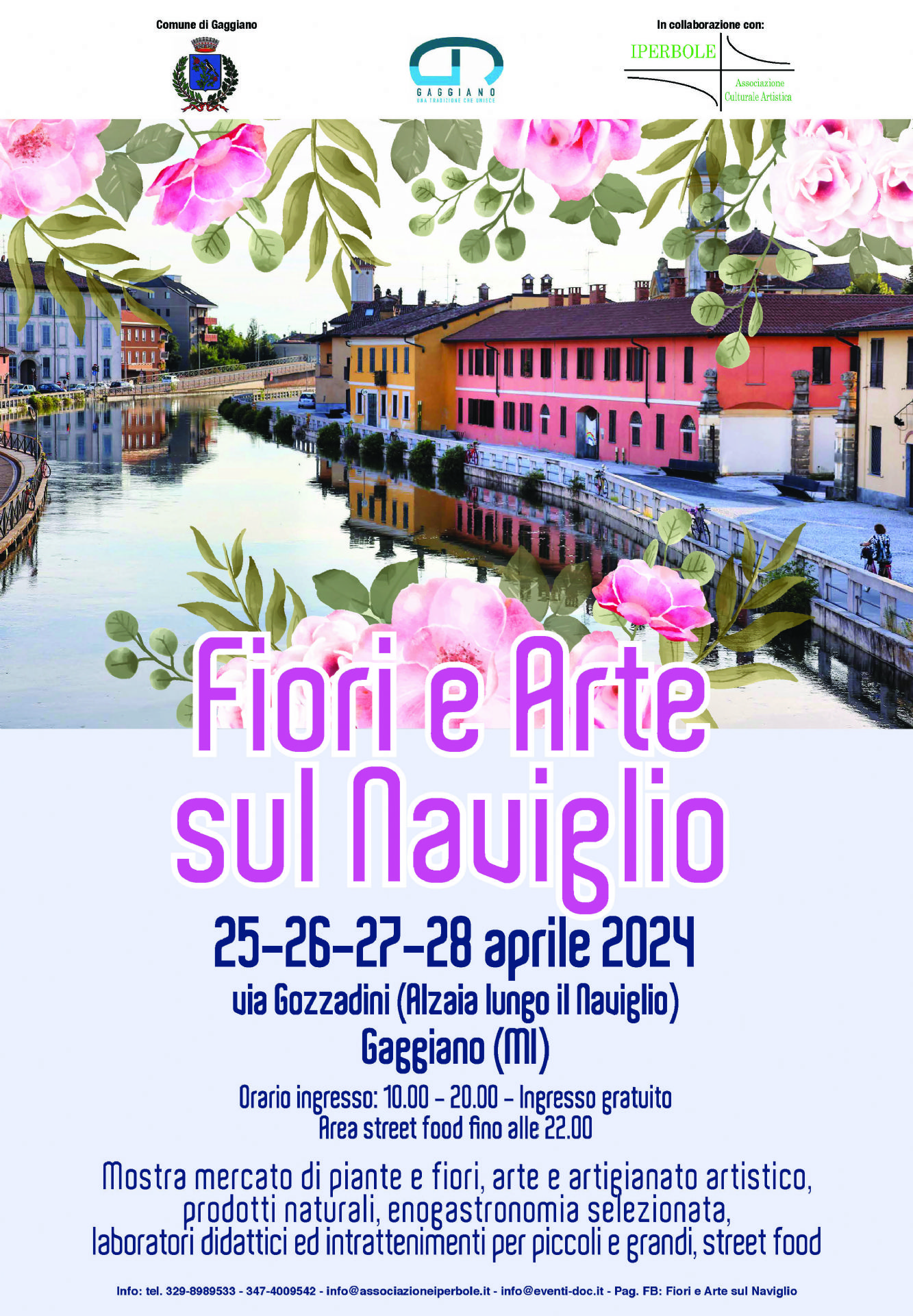 Il Comune di Gaggiano, in collaborazione con l'Associazione Culturale Iperbole, organizza la seconda edizione della manifestazione “Fiori e Arte sul Naviglio” dal 25 aprile al 28 aprile 2024, via Gozzadini (Alzaia lungo il Naviglio).