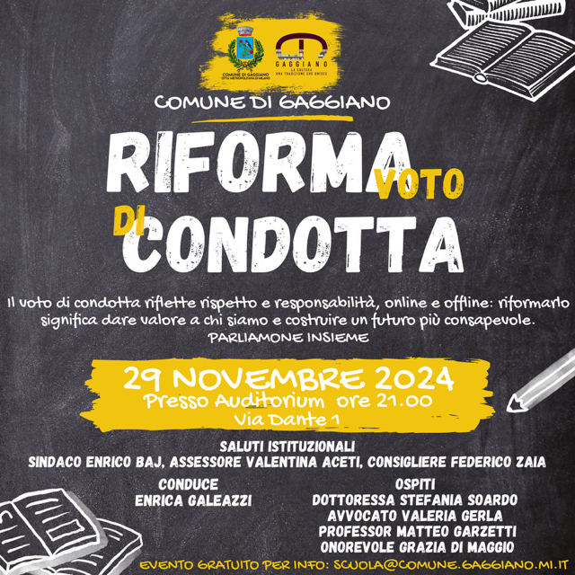 Il Comune di Gaggiano in data 29 novembre, organizza un evento pubblico dedicato alla riforma del voto di condotta.