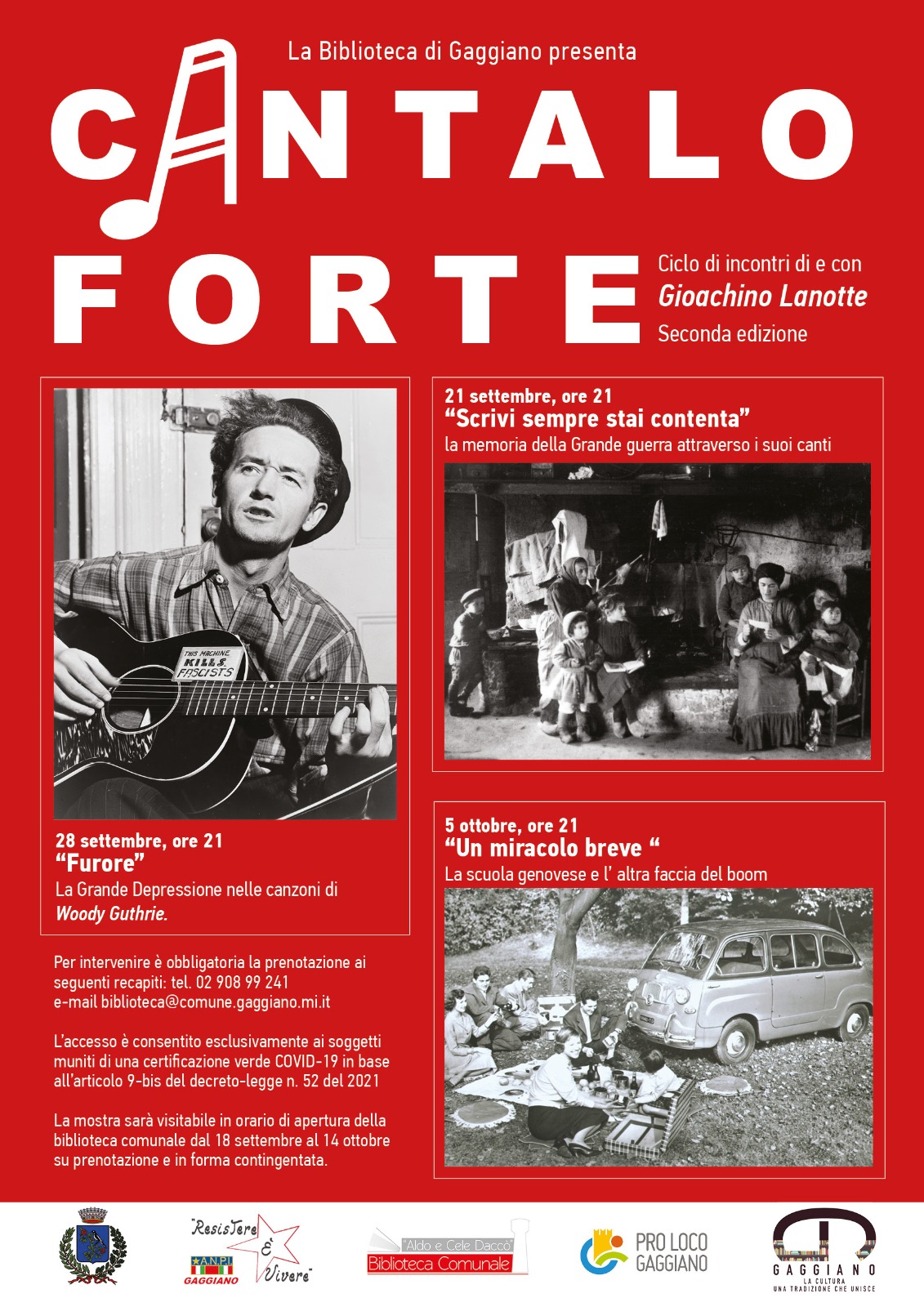 Rassegna storica/musicale a cura di Gioachino Lanotte, docente presso l’università Cattolica di Milano: con musica dal vivo e filmati di repertorio che ripercorrono e sottolineano eventi o periodi della storia italiana moderna e contemporanea.