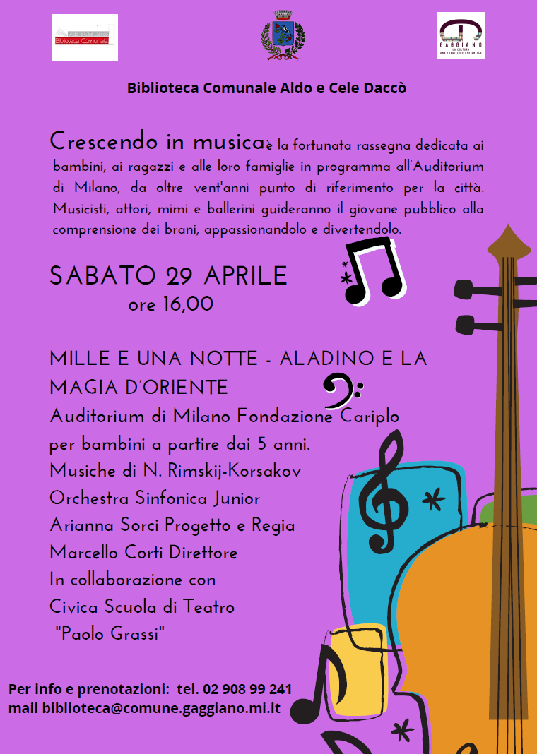 Per info e prenotazioni: biblioteca@gaggiano.comune.mi.it/ tel. 02 908 99 241