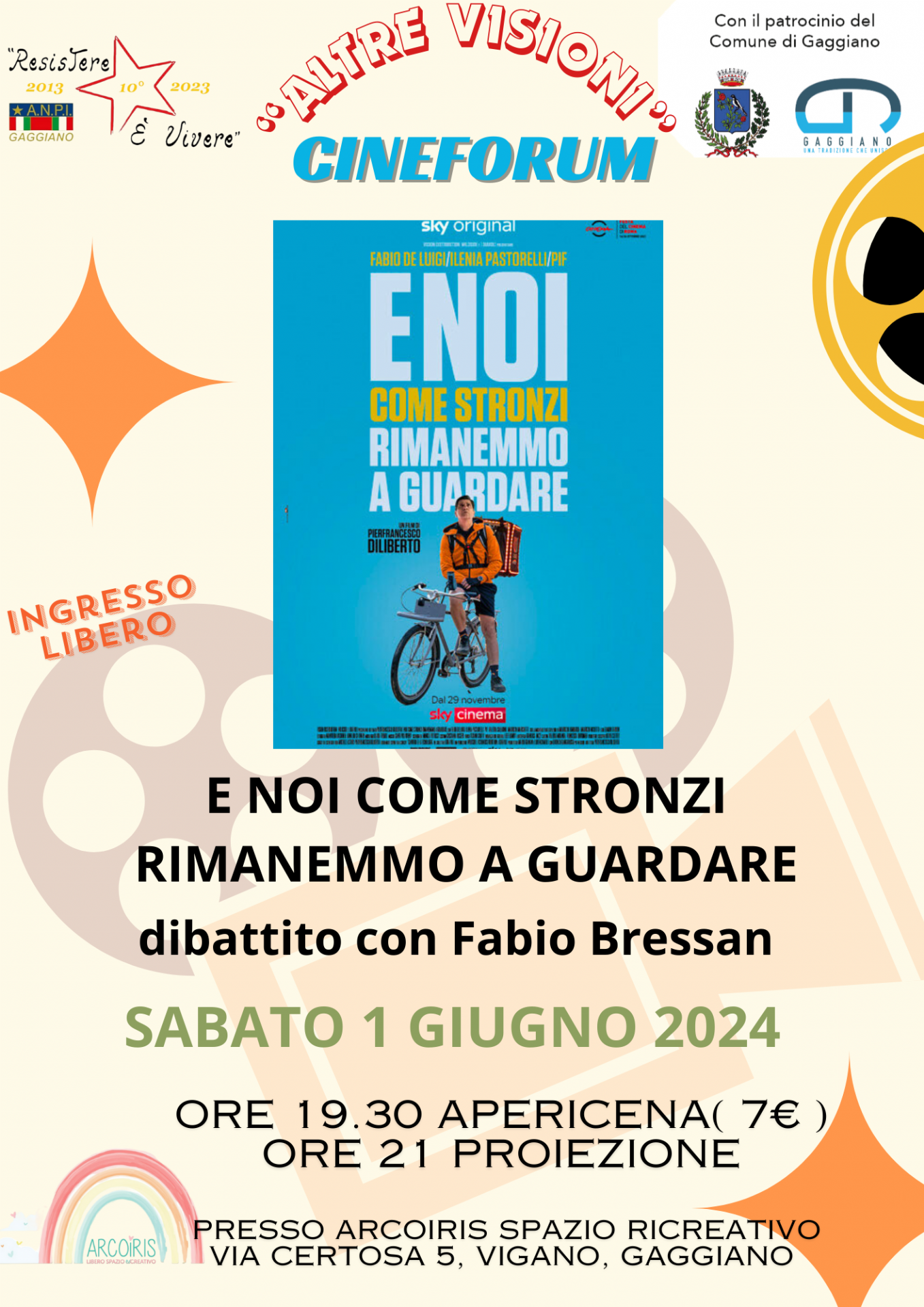 Sabato 1 giugno 2024 alle ore 21.00 presso ARCOIRIS Fraz. Vigano cineforum "E noi come stronzi rimanemmo a guardare" organizzato da A.N.P.I. Gaggiano