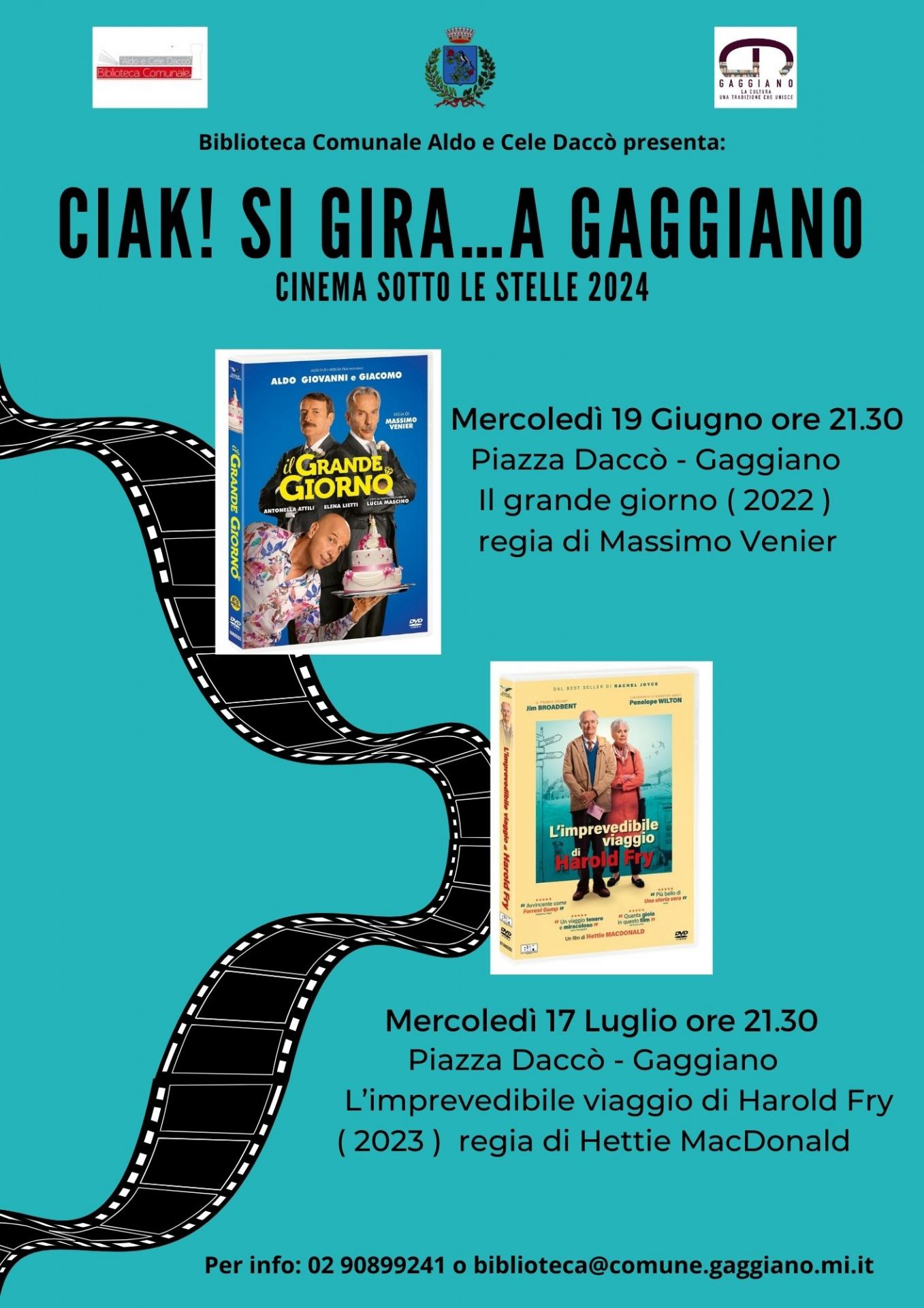 Dopo il successo delle ultime edizioni, torna l’appuntamento con la rassegna di cinema all’aperto “Ciak! Si gira…a Gaggiano” organizzata dall' Assessorato alla Cultura del Comune di Gaggiano, in collaborazione con la Biblioteca Comunale Aldo e Cele Daccò.
