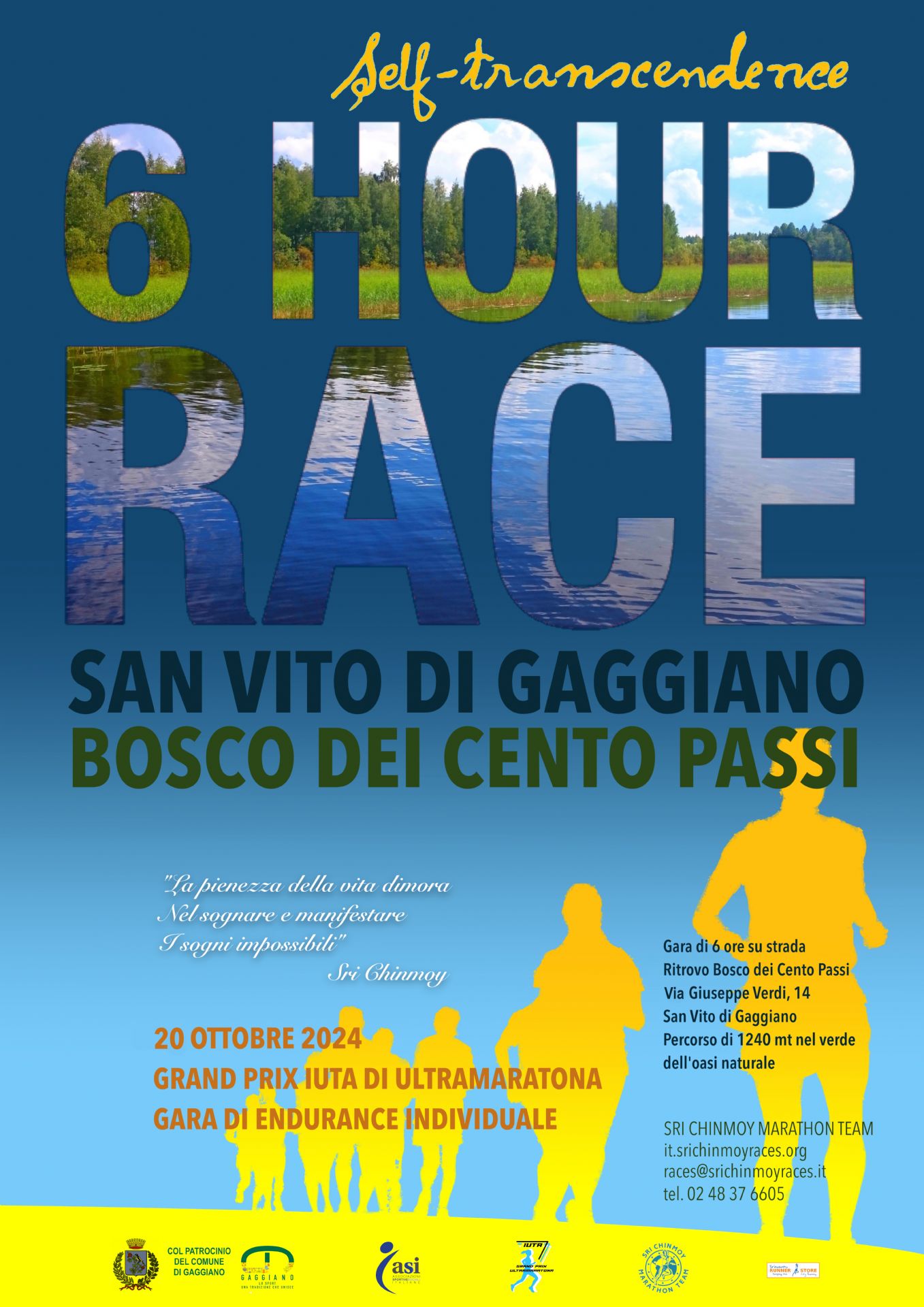 Per maggiori informazioni ed iscrizioni consultare il sito it.srichinmoyraces.org/self-trascendence-6h-race