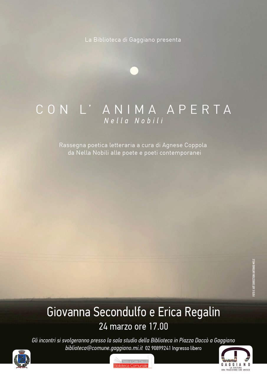 La Bibloteca Comunale in collaborazione con il Comune di Gaggiano presenta una rassegna poetica letteraria a cura di Agnese Coppola "Con L'Anima aperta - da Nella Nobili alle poete e poeti contemporanei".
