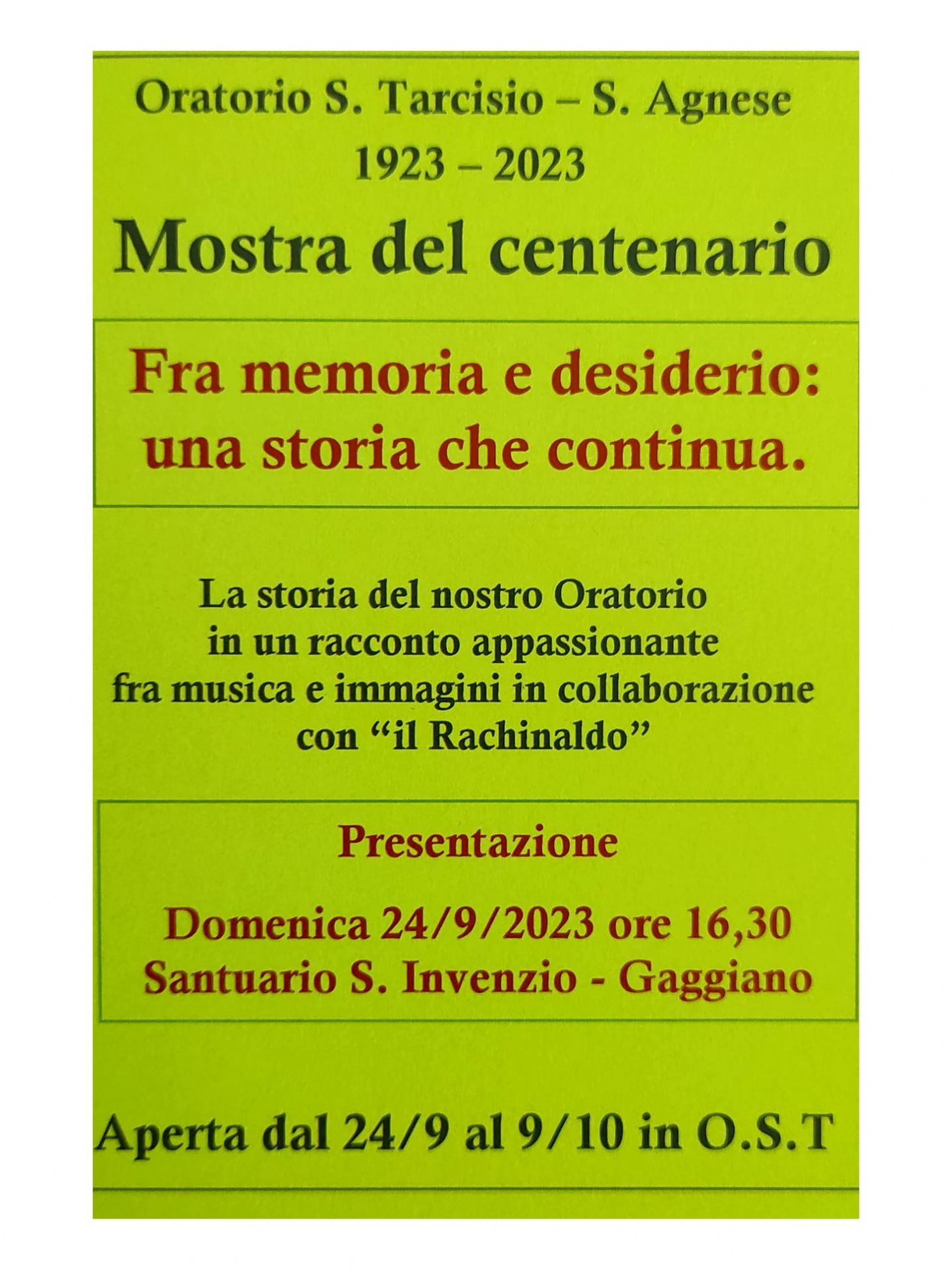 24 settembre h. 16.30 Santuario di S.Invenzio