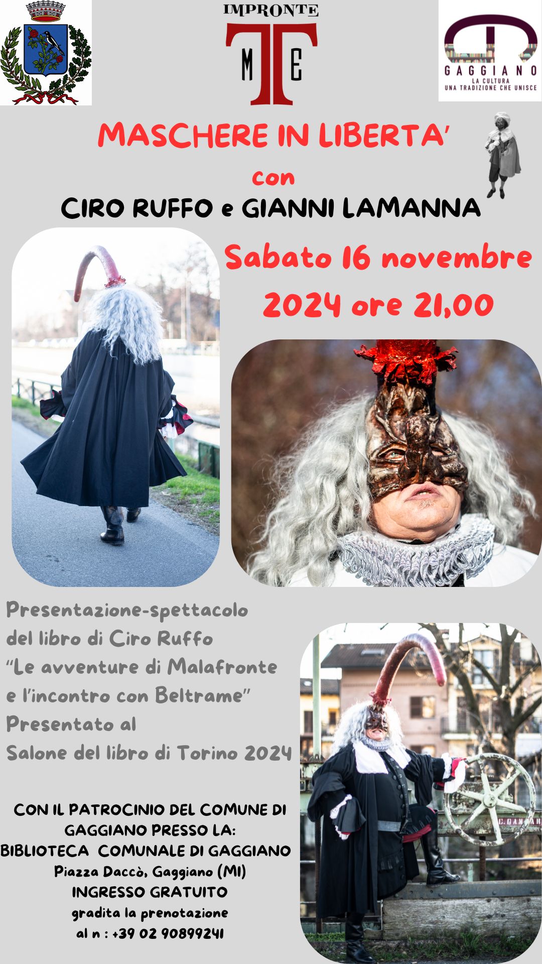 Ciro Ruffo organizza con il patrocinio del Comune di Gaggiano la presentazione/spettacolo del libro "Le avventure di Malafronte e l'incontro con Beltrame" presentato al Salone del libro di Torino 2024