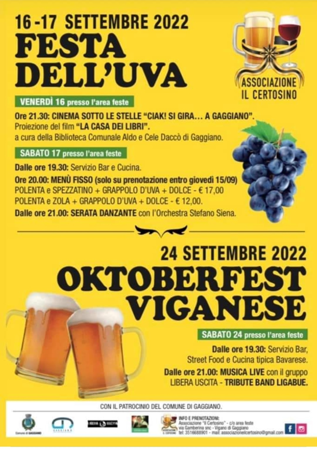 16 e 17 settembre Festa dell'Uva a Vigano Certosino