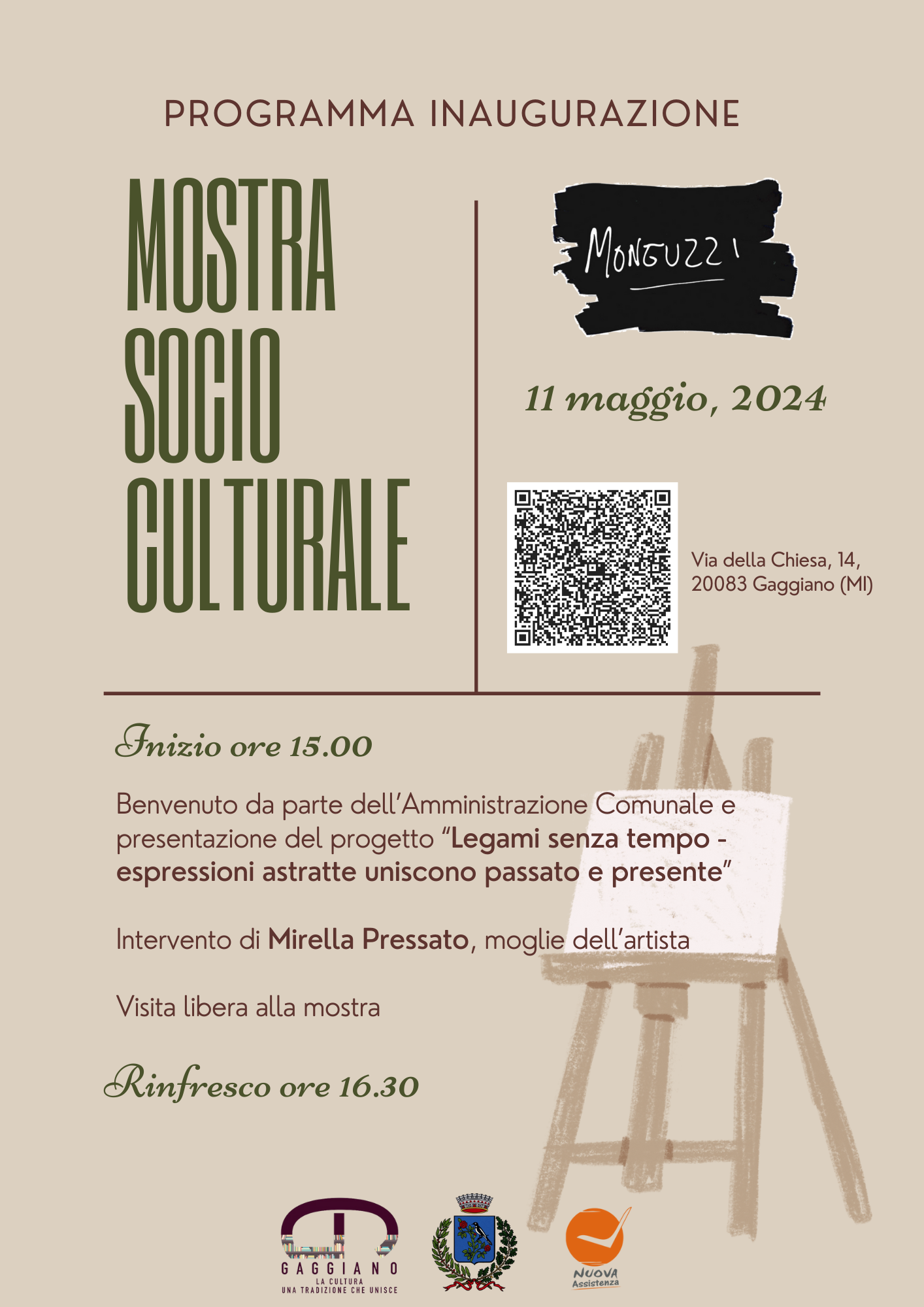 L'Assessorato alla Cultura e l'Assessorato ai Servizi Sociali organizzano, in collaborazione con la Nuova Assistenza, una mostra socio-culturale del pittore Giuseppe Monguzzi, artista gaggianese di rinomata fama per le innumerevoli mostre personali esposte regolarmente sia in gallerie private che in spazi pubblici.