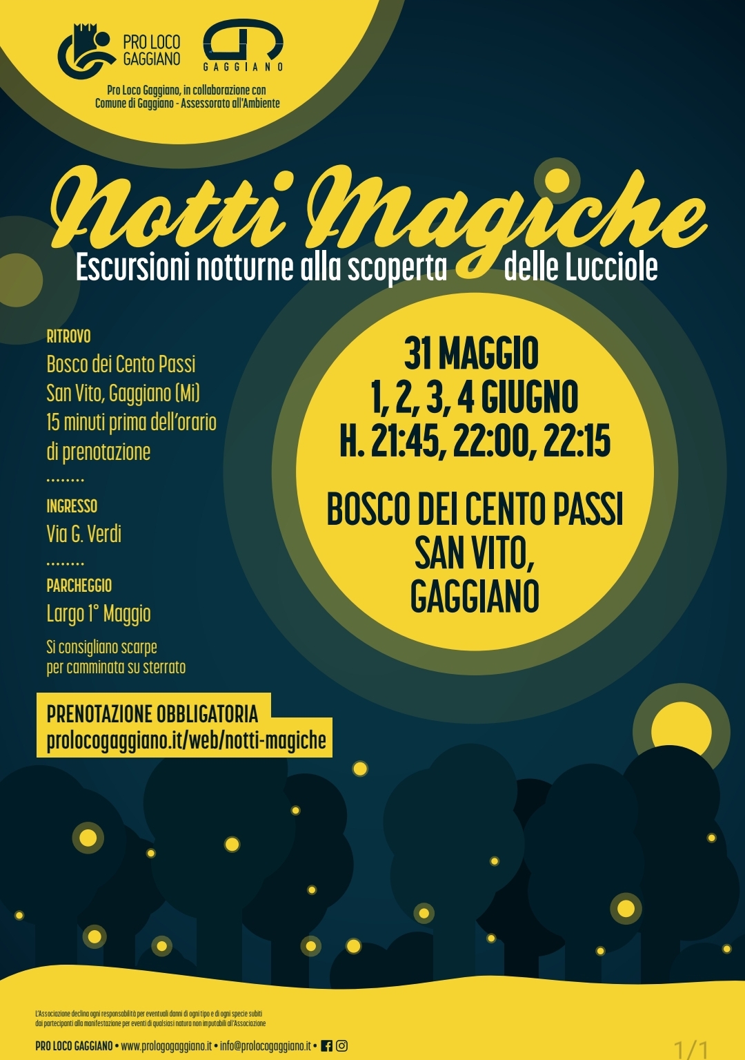 Una passeggiata notturna, immersi nel silenzio del Bosco accompagnati dal suono degli animali e dei volontari Pro Loco Gaggiano che vi parleranno delle lucciole.
