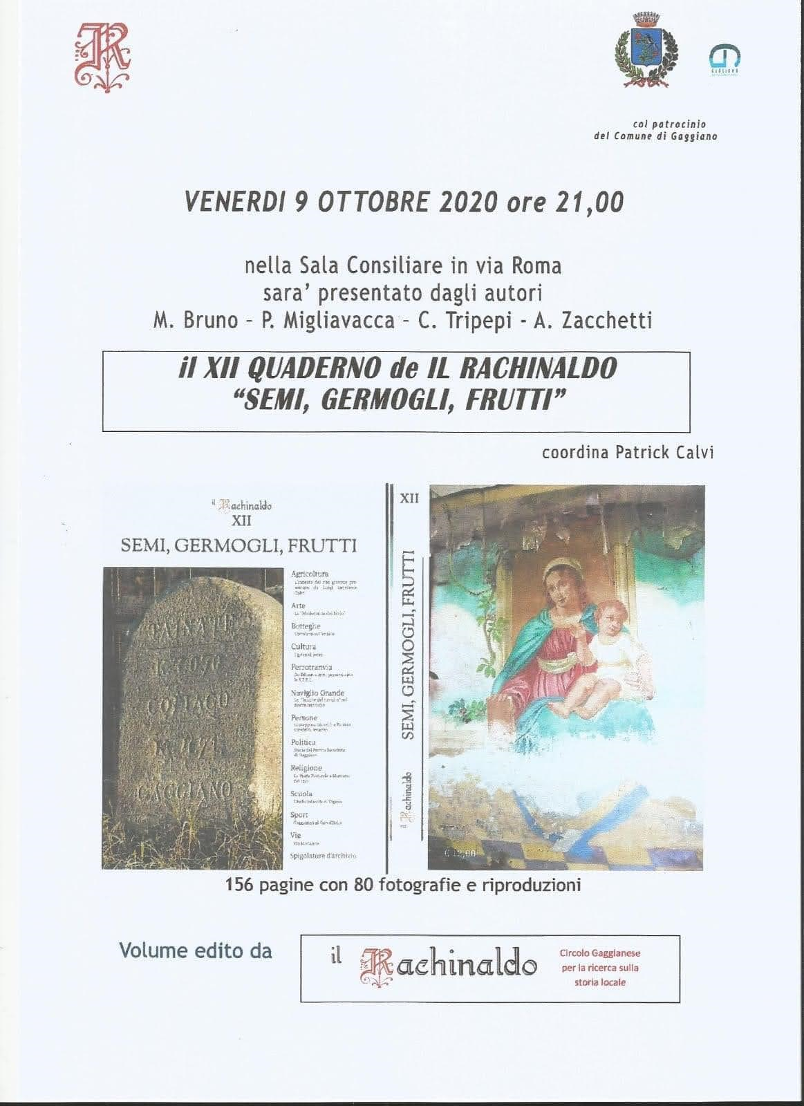 Presentazione del XII quaderno del Il Rachinaldo: "Semi, Germogli,Frutti"