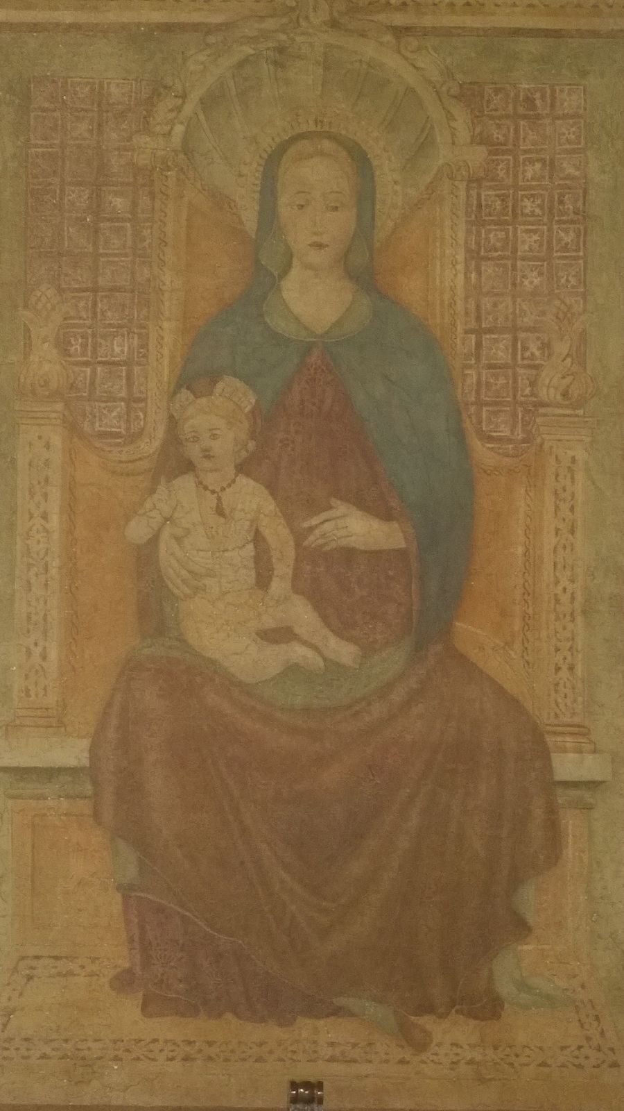 Da notare, nell’affresco, la corona di corallo al collo del Bambino, particolare che si riscontra in altre pitture del territorio eseguite nello stesso periodo: nella chiesa di Vigano, nell’Oratorio di Sporzano e nell’Oratorio di Donato Del Conte.
