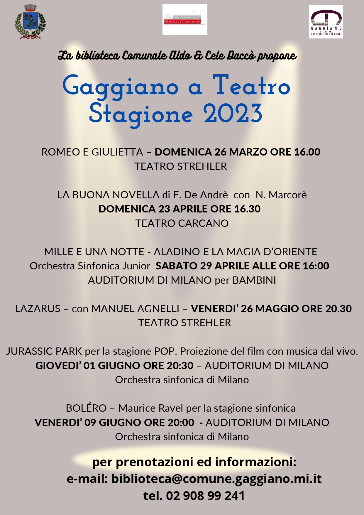 La biblioteca Comunale Aldo & Cele Daccò, per Gaggiano a Teatro, propone:
