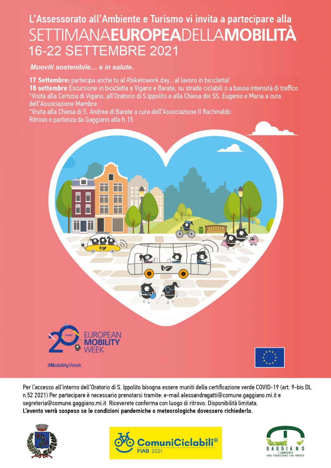 18 settembre Escursione in bicicletta a Vigano e Barate, su strade ciclabili o a bassa intensità di traffico, organizzata nell'ambito della Settimana Europea della Mobilità