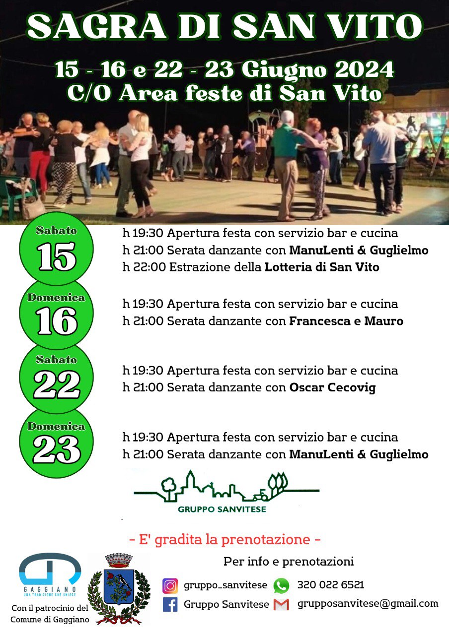 Il Gruppo San Vitese organizza con il patrocinio del Comune di Gaggiano la SAGRA di SAN VITO.