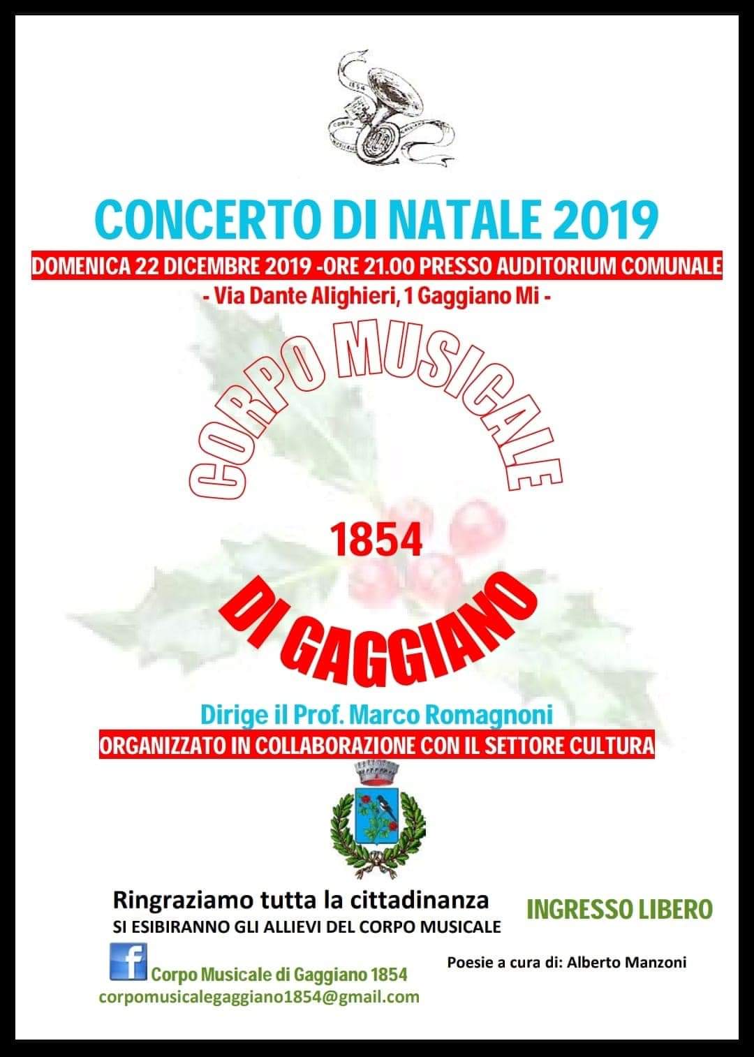 Alle 21 presso l'Auditorium, Concerto del Corpo Musicale 1854 di Gaggiano