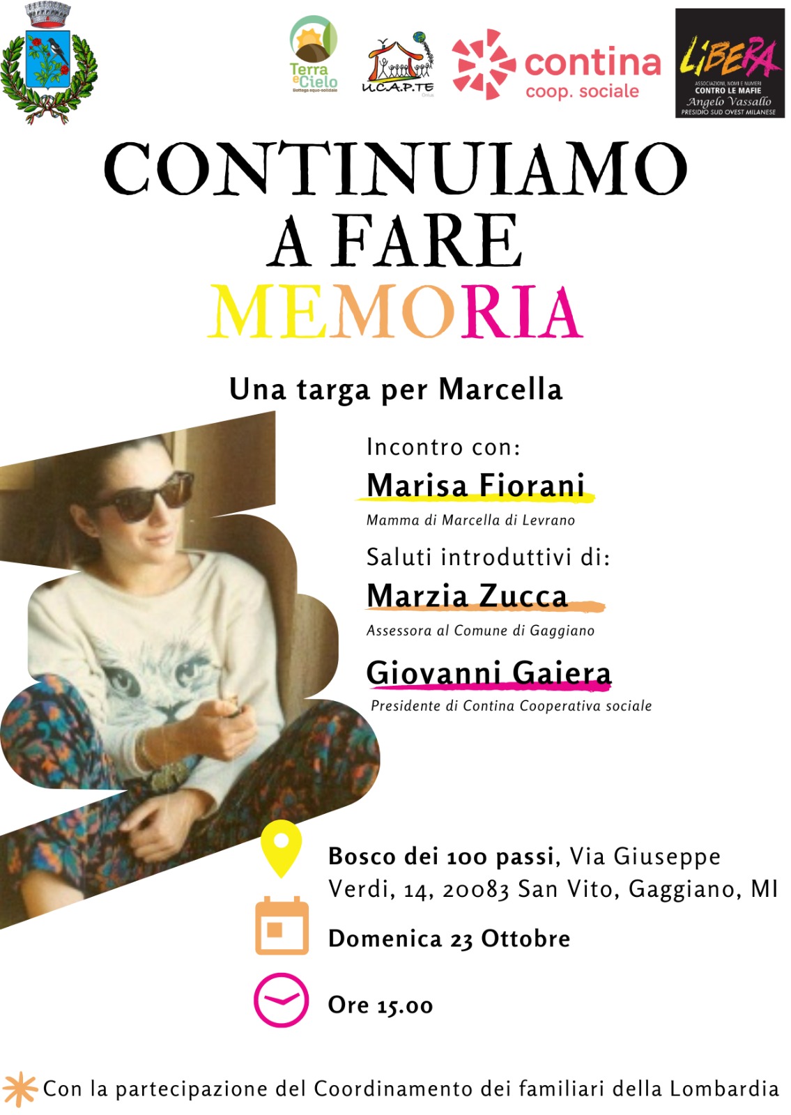 Iniziativa del Presidio di Libera Sud-ovest Milano, Associazione Familiari Vittime di mafia della Lombardia, Coop Terra e Cielo, Contina Cooperativa Sociale e U.C.A.P.TE .