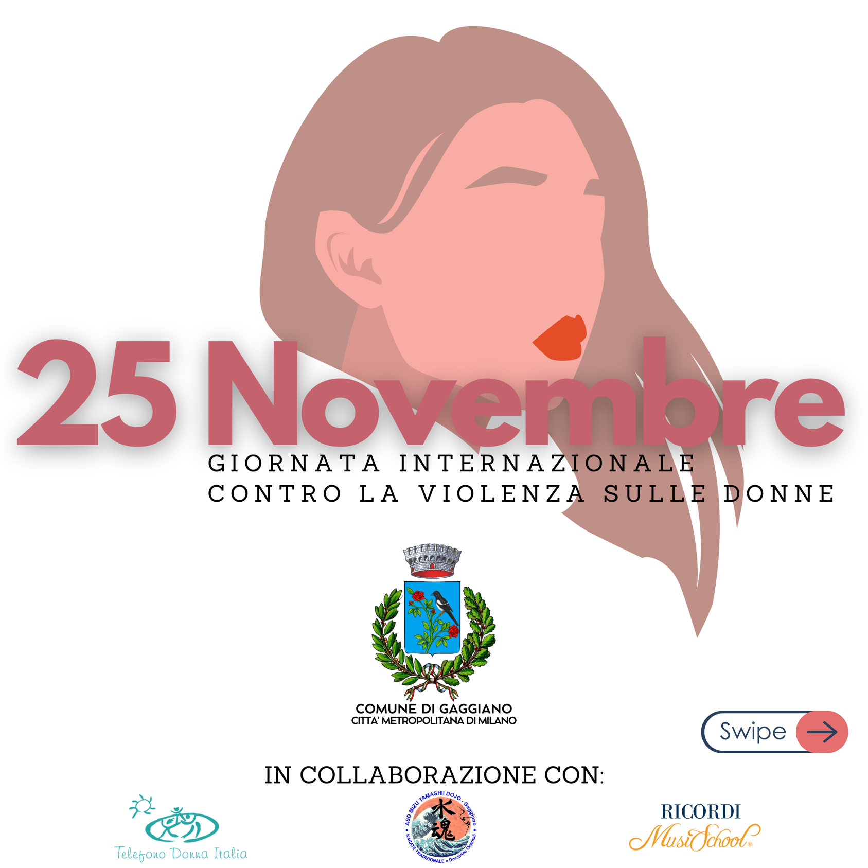 25 NOVEMBRE - In occasione di tale giornata il Comune di Gaggiano in collaborazione con la scuola di musica Ricordi, ASD Mizu Tamashii Dojo e lo sportello antiviolenza di Magenta organizza quattro incontri per tutto il mese di novembre. L'Amministrazione vuole ribardire che questa non deve essere solo una ricorrenza, ma un impegno quotidiano. Ogni giorno è un'opportunità per promuovere la consapevolezza, la sensibilizzazione e il rispetto.