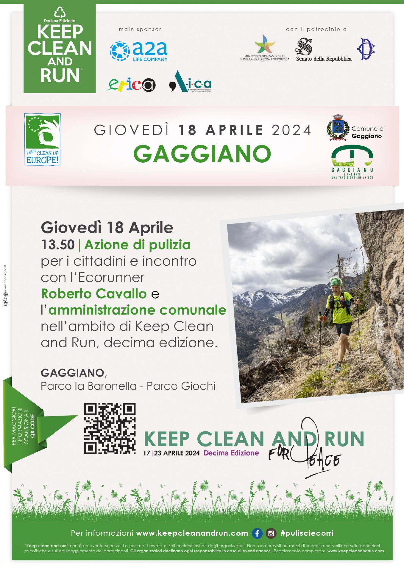 L'Associazione A.I.C.A. organizza, con il patrocinio del Comune di Gaggiano, la decima edizione della manifestazione "Keep Clean and Run - Pulisci e Corri" che si terrà in data 18 aprile 2024.