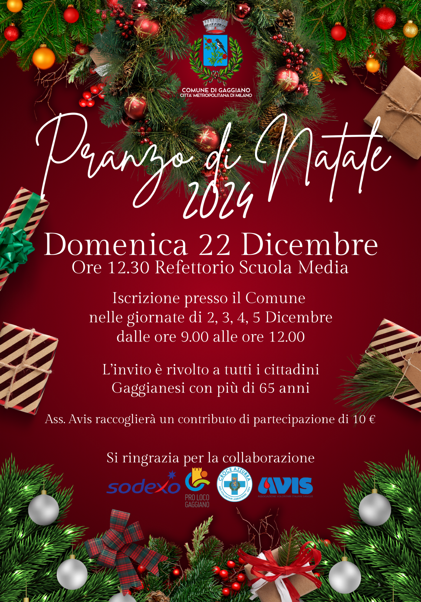 Il Comune di Gaggiano è lieto di invitarvi al Pranzo di Natale